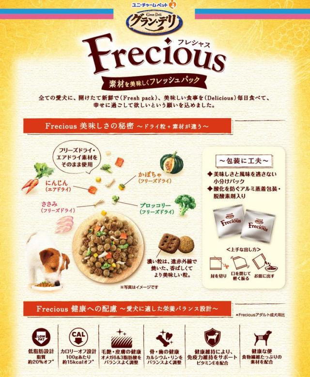 100gあたり約15kcalオフ* ※フレシャス アダルト 成犬用比