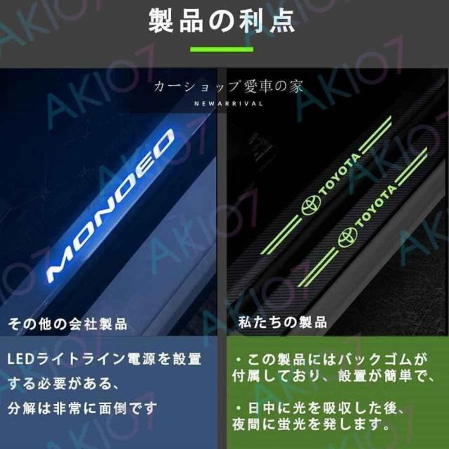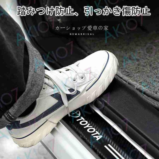 【傷防止】車への乗降り時に靴などが当たる際の衝撃、擦り傷から、スカッフプレートはご愛車のボディやボディの塗装を守ってます。車の乗降り敷居を踏む心配はありません。