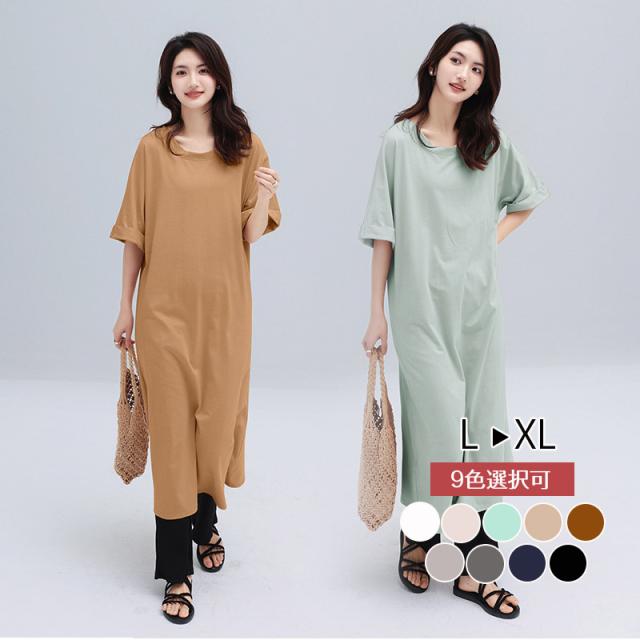 ワンピース ロング丈 ロング丈ワンピース シャツワンピース 柔かい ロングTシャツ ルームウェア 半袖 ゆったり 春夏 初秋 送料無料