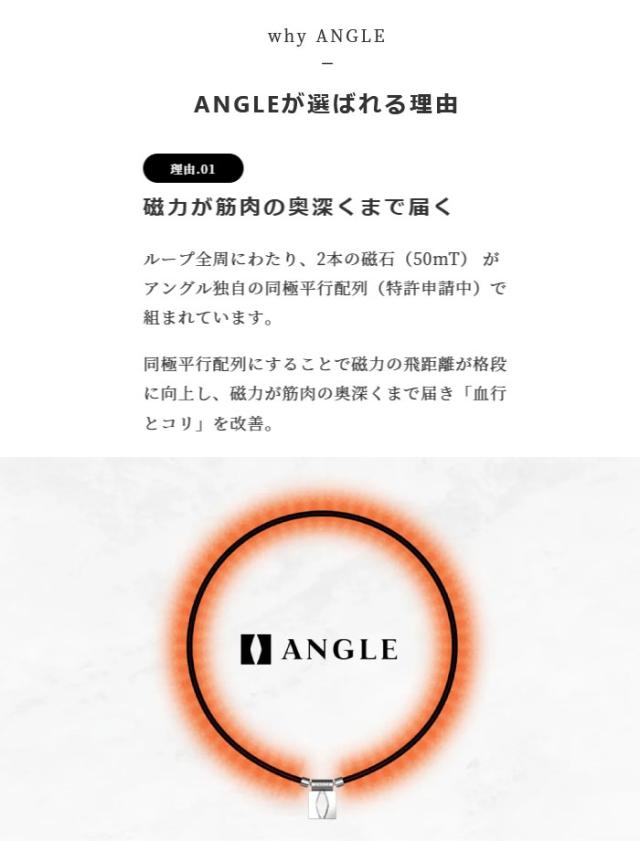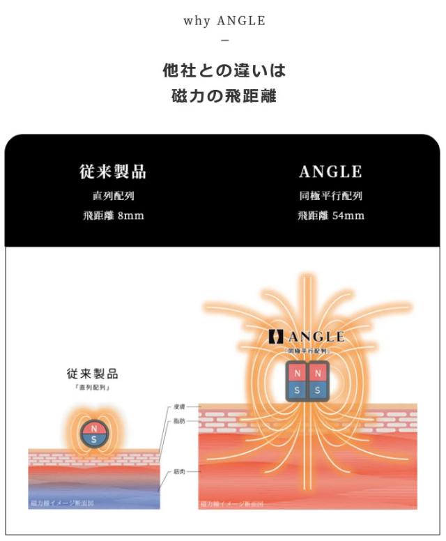 アングル独自の技術で、ループ全周にわたり2本のゴム磁石(50mT)を『同極平行配列』で内蔵。