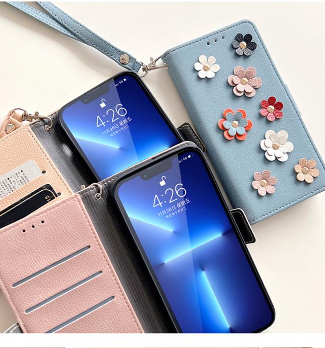 iphone ケース 手帳型 韓国 iphone13 iphone12 ケース 手帳型 花柄 iPhone14 pro max ケース おしゃれ スマホケース iPhone 13 12 mini カバー 手帳 ストラップ