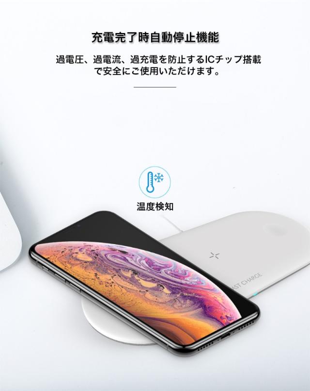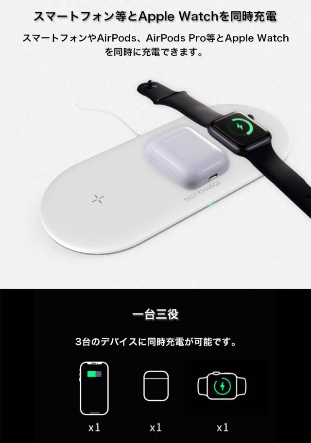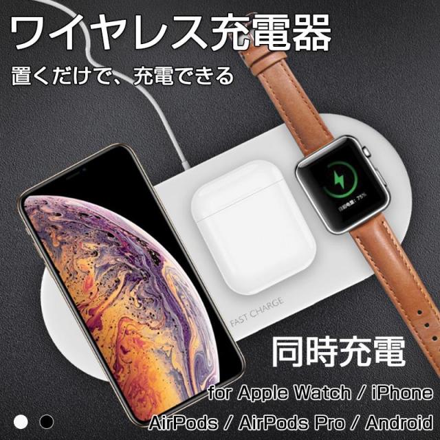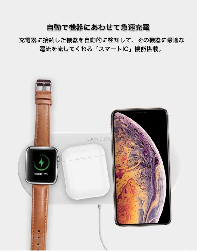 ワイヤレス充電器 Qi対応 Apple Watch AirPods iPhone 同時充電 急速充電 置くだけ アンドロイド Galaxy HUAWEI スマホ 充電器 おしゃれ