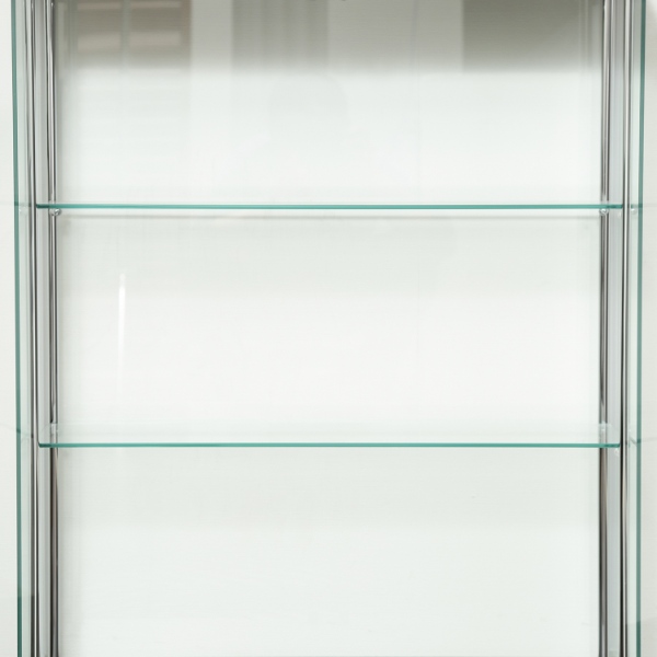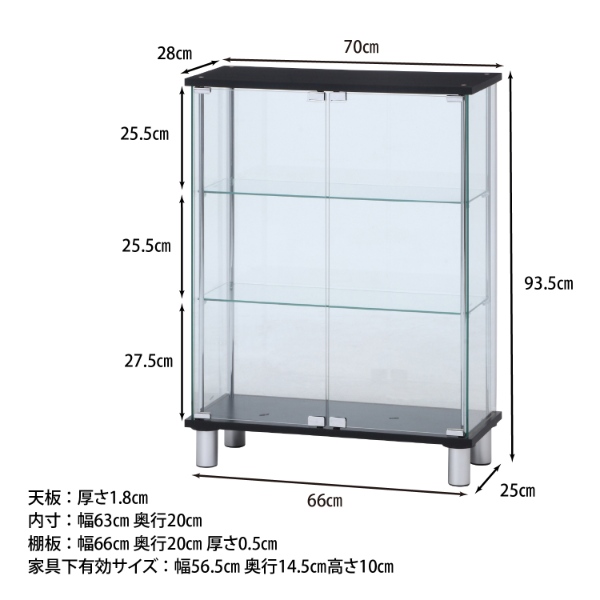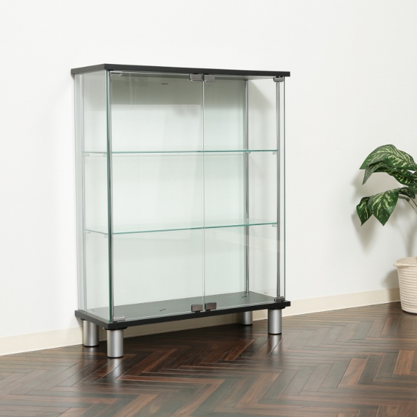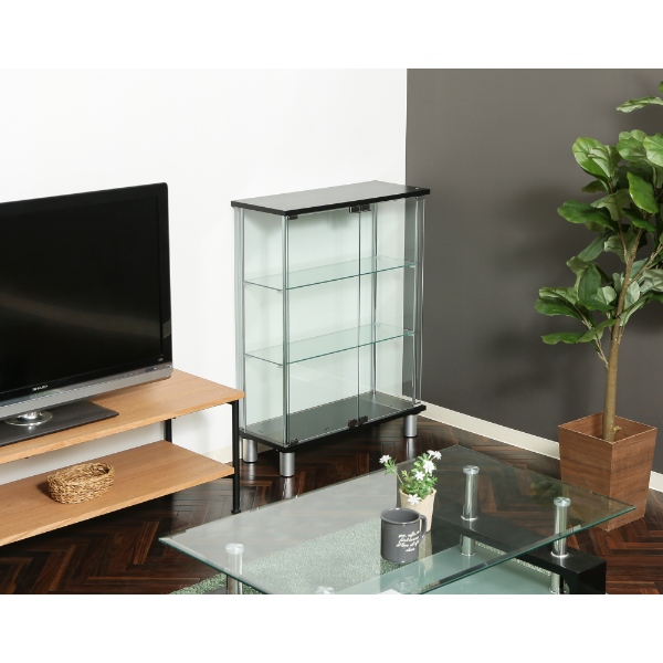 お気に入りのフィギュアやアクセサリーをより美しく見せてくれる強化ガラスケース。大切なコレクションを埃から守り、いつも綺麗な状態で展示できます。 360度どの角度からでも見える全面ガラスタイプです。 扉はマグネット式で手軽に開閉できます。 ■カラー:ブラック ■サイズ: 全体:幅700 × 奥行280 × 高さ935mm 耐荷重(ガラス棚板):5kg 強化ガラス棚板厚み:5mm ■重量:約26.6kg ■素材 構造部材(天板/地板):プリント紙化粧繊維板 構造部材(柱):金属(鋼) 構造部材(扉板/背板/側板/棚板):強化ガラス 表面加工(柱):めっき(クロム) ■組立:お客様組立品 ※組み立ては2人以上で行ってください。 ※お客様組立て品につきましては、組み立て後に不良の連絡をされても対応ができません。組み立て前にパーツに不良・傷等がないか、必ずご確認下さいます様よろしくお願い申し上げます。 ※記載は商品仕様の一部です。仕様説明不足等の理由での返品はできません。特に適合等は必ずご確認ください。