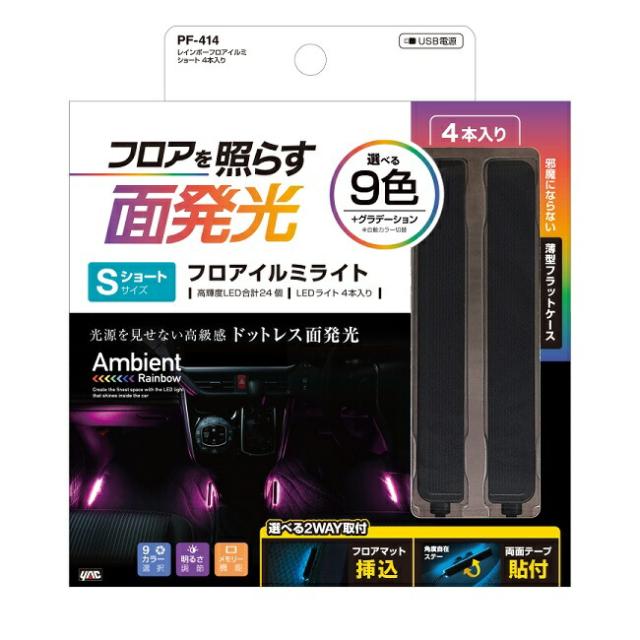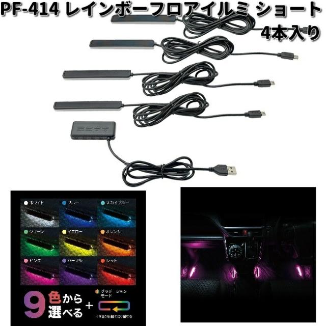 槌屋ヤック PF-414 レインボーフロアイルミ ショート 4本入り PF414 お取り寄せ商品 カー用品 車内 ライト ランプ イルミ