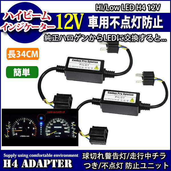 ハイビームインジケーター 不点灯防止 点灯回路 アダプター ヘッドライト LED H4 12V車対応 リレーレス Hi/Low 共通タイプ 2本セット