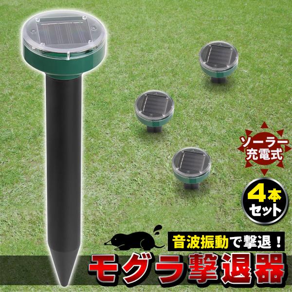 モグラ退治 モグラ撃退器 4本 駆除 ソーラー式 動物撃退器 超音波 退治 モグラ対策 音波振動 花壇 家庭菜園 捕獲器 捕獲機 捕獲 トラップ