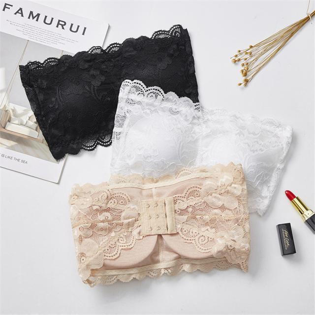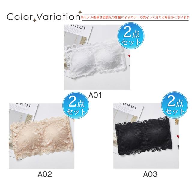 ストラップレスブラ 2点セット 肩紐なし 総レース チューブトップ ブラジャー パッド付き 落ちない 盛れる ノンワイヤー ストラ