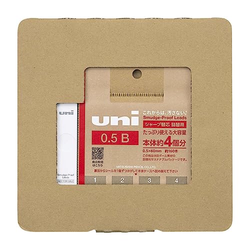 【シャープペン芯 ユニ 詰替用】段ボール素材パッケージの詰替用です。芯を詰め替えることで、ユニの本体ケースを捨てずに繰り返し使うことができます。