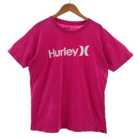 【中古】ハーレー Hurley Tシャツ 丸首 ロゴプリント 半袖 コットン ピンク ホワイト 白 M メンズ