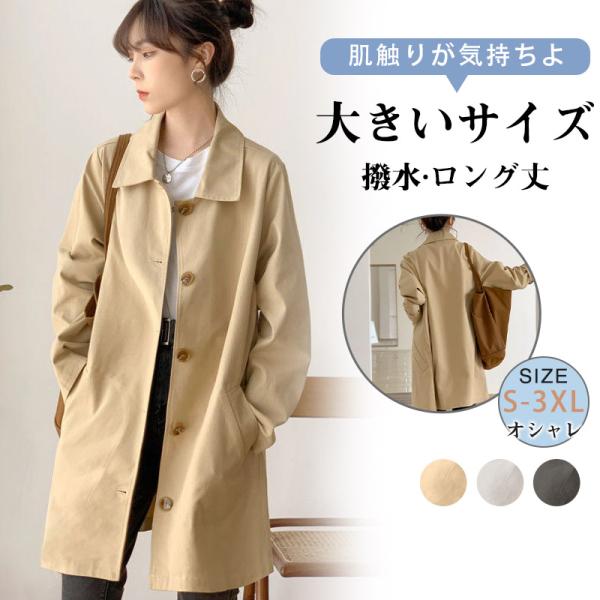 トレンチコート レディース スプリングコート トレンチ 春 ロング ベーシック 撥水 ロング丈 大きいサイズ ママ 通勤 通学 花粉