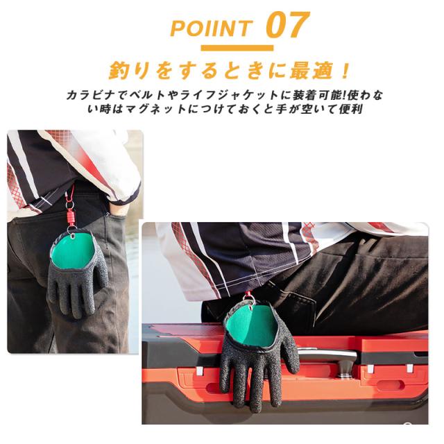 【キーワード】フィッシンググローブ 釣り 手袋 魚つかみ 滑り止め マグネット グリップ ガード フィッシュ 臭い ニオイ ぬめり ヌメリ エサ エビ オキアミ 魚 ルアー エギング ジギング シーバス 青物 ショアジギ サビキ 捌く 調理