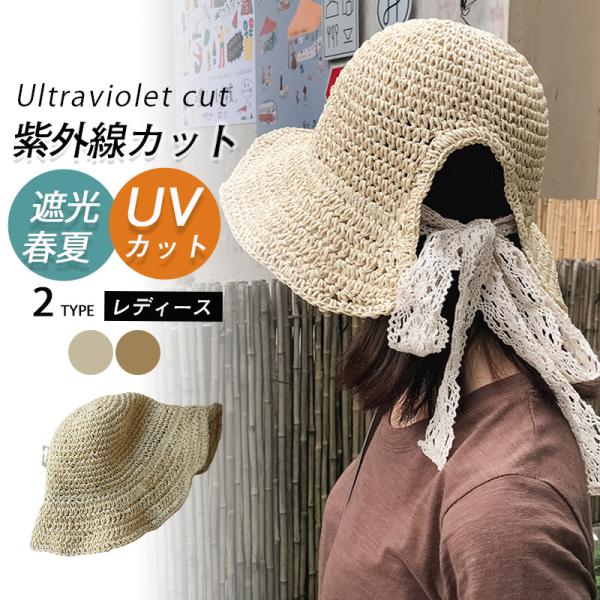 麦わら帽子 紫外線カット 帽子 レディース UVカット帽子 折りたたみ おしゃれ ギフト プレゼント 贈り物