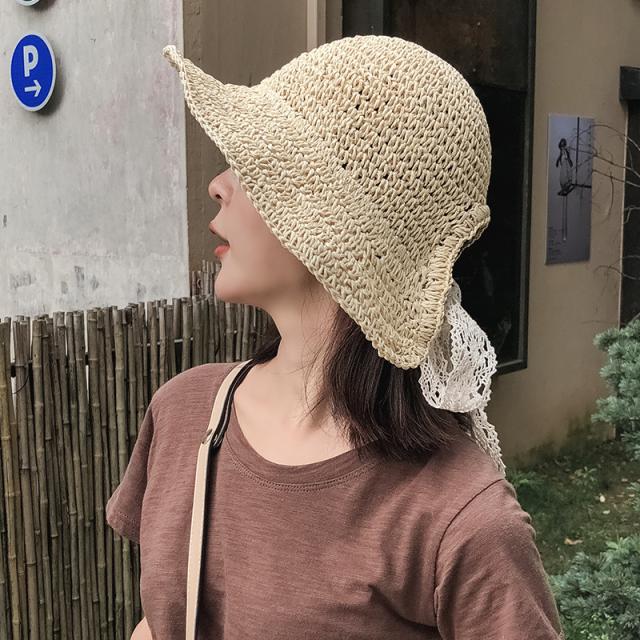 シンプルでベーシックなデザインに細リボンがついた麦わら帽子