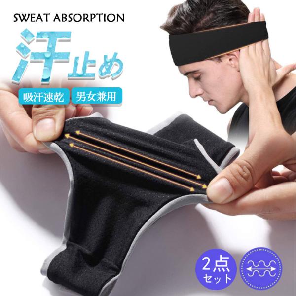 ヘッドバンド ヘアバンド ヘアターバン 2点セット スポーツ メンズ 汗止め | 吸汗速乾 UVカット ターバン ヘアバンド