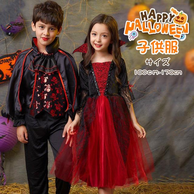 吸血鬼 ハロウィン 仮装 子供 魔女 悪魔 可愛い 人気 ワンピース コスプレ キッズ 女の子 半袖 パーティー イベント 立ち襟 演出服 クリスマスツリー