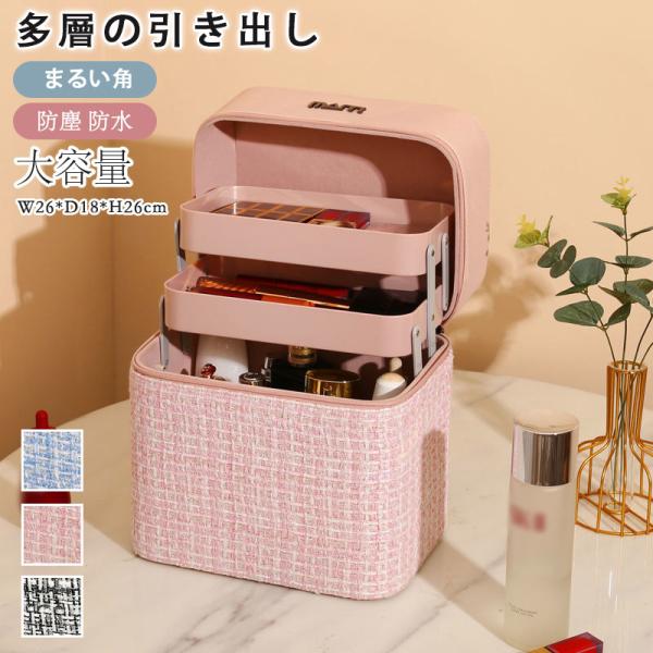 お洒落 メイクボックス 大容量 化粧品収納 持ち運び 化粧ポーチ バニティタイプ 機能的 かわいい コスメボックス 持ちやすい