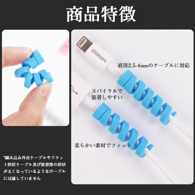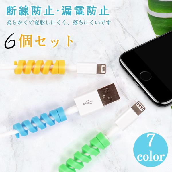 ★限定クーポン有り★限定クーポン有り!ケーブルプロテクター 6個セット スパイラル プロテクター 保護 カバー ゴム 断線防止 android iPhone 断線防止 保護