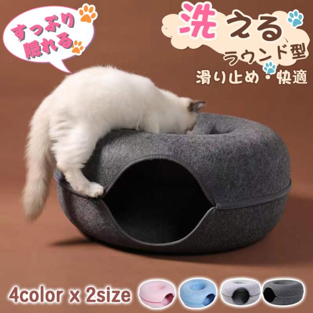 にゃんドーナツ 洗える ペットベッド 猫 キャットハウス トンネル ねこハウス おもちゃ 商品動画あり