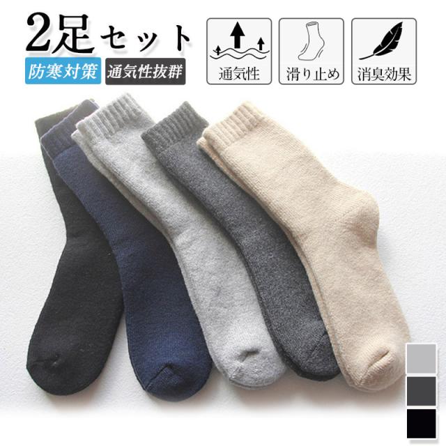 発熱靴下 メンズ ソックス 3色選べる 2足セット 組合せ自由 冬 蓄熱 ソックス ウールソックス