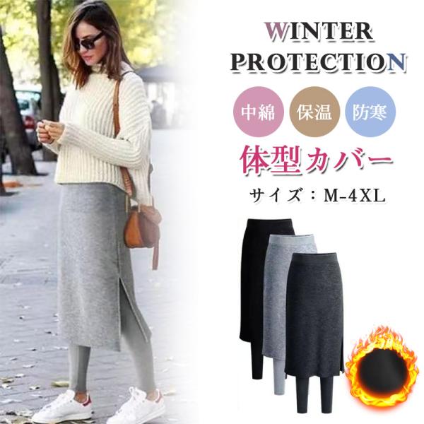 ★限定クーポン有り★ロングスカート レディース スカート パンツ ハイウエスト 大人 体型カバー 冬 保温 中綿