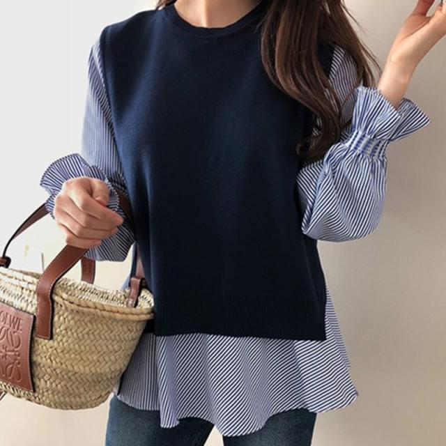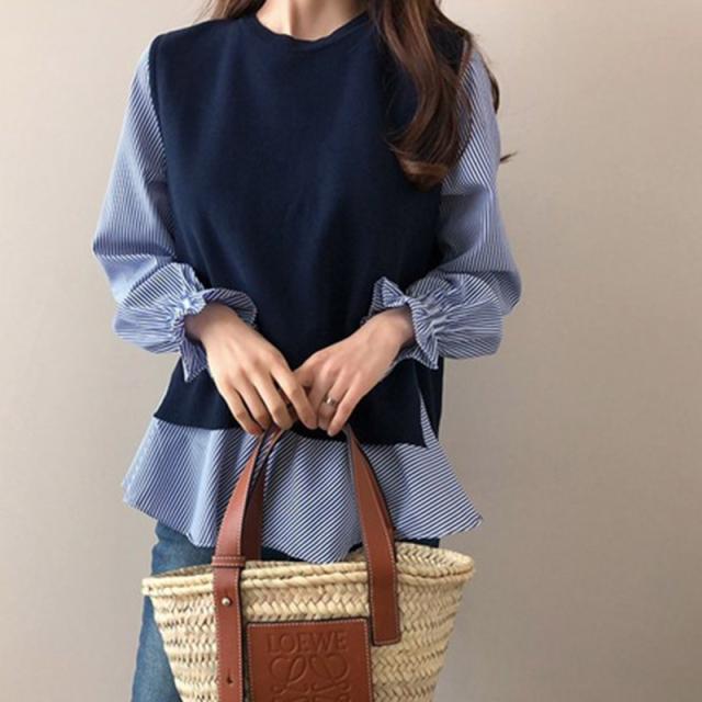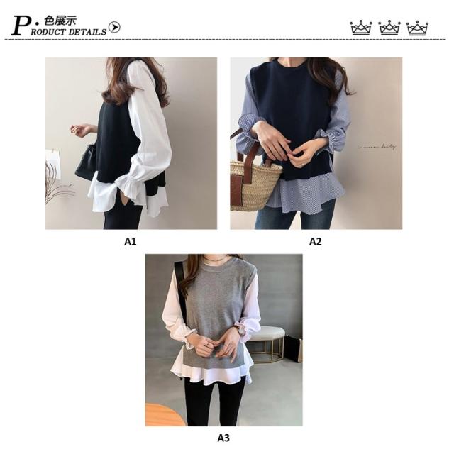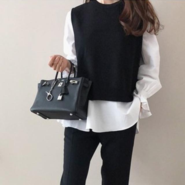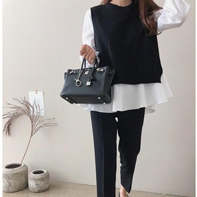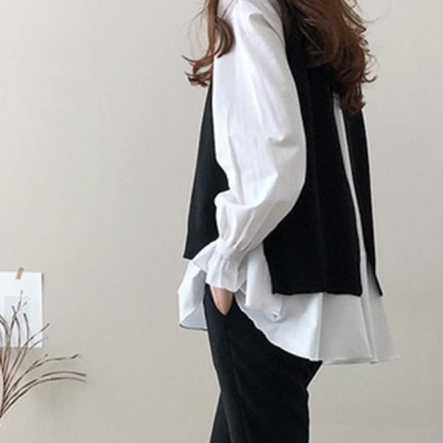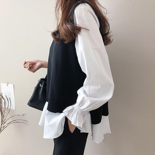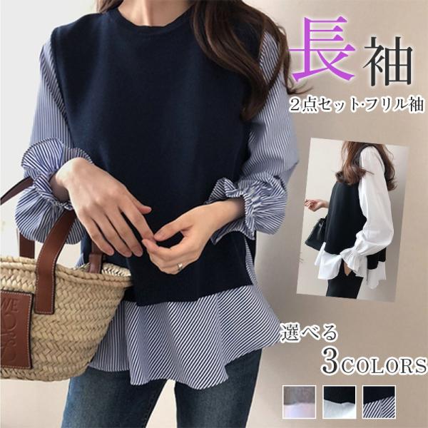 ブラウス ベスト 2点セット シャツ レディース トップス レイヤード フリル 袖 ツーピース