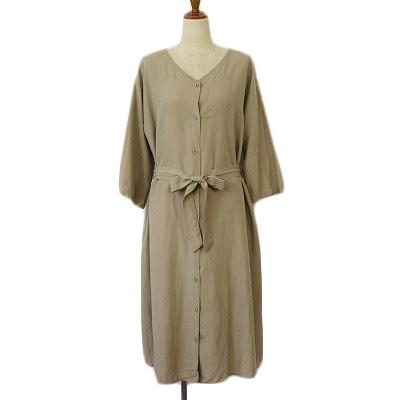 【中古】スタディオクリップ Studio Clip ワンピース リネン混 七分袖 M ベージュ レディース