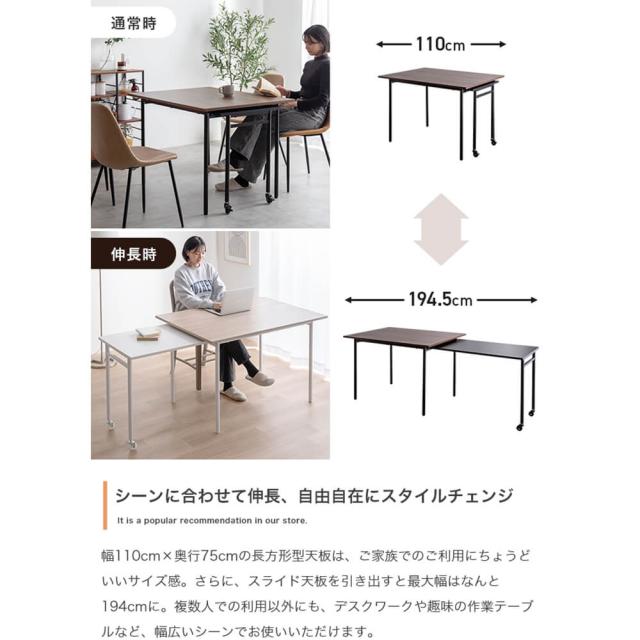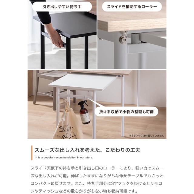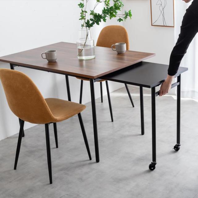 新登場のダイニングテーブルは、伸縮式引き出しで空間の自在な変化を可能に。