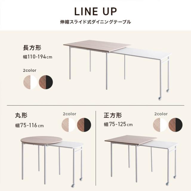 伸縮スライド式ダイニングテーブル正方形 伸縮スライド式 ダイニングテーブル 正方形 幅75〜125cm ナチュラル ブラウン