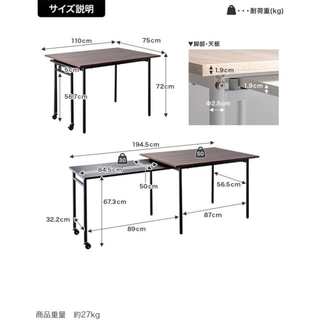 本体サイズ: 幅 75cm 〜 125cm × 奥行 75cm × 高さ 72cm商品重量: 約19.21kg