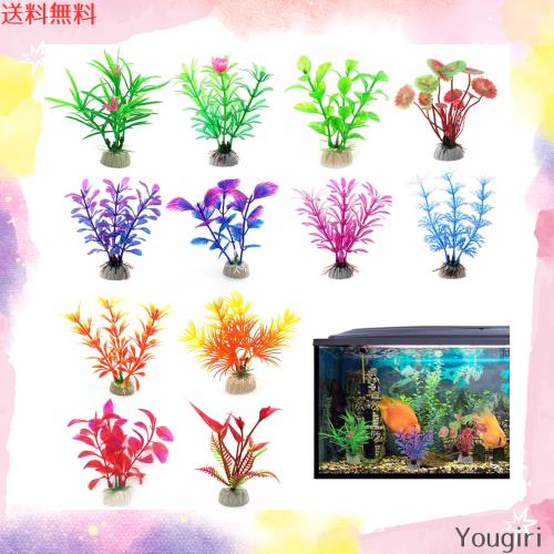 水草 人工 ( 12個セット )水槽用人工水草 アクアリウム植物 プラスチック 人工水草 セット 水槽内装 水槽装飾 小さめ カラフル 魚タン