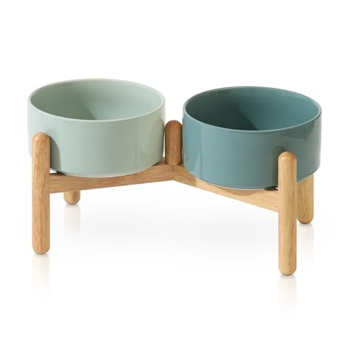 ペット 餌入れ スタンド付きセラミック食器 犬 ご飯皿 水入れ 木製食事台 大中小型犬用 フードボウル 滑り止め 洗いやすい 電子レンジ 食