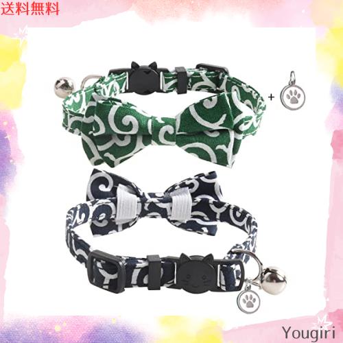 猫首輪 猫用 首輪 子犬 迷子札付き リボン付き 鈴付き 蝶結び付き 調整可能 可愛い 軽量 ペット首輪 セーフティバックル付 布 和風 唐草