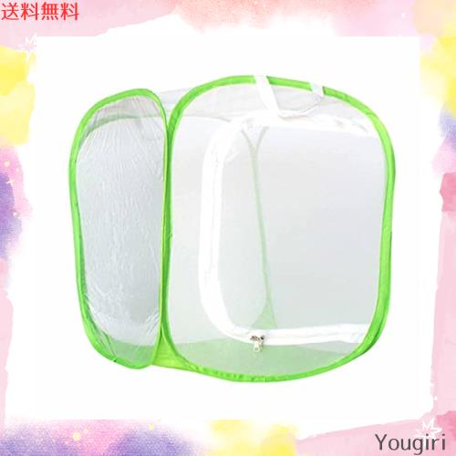 【昆虫ケージメッシュ素材】網タイプの虫かご、風通しのがとても良いので、虫が元気です。虫の生活を観察するのにとても便利です。軽々として丈夫な作りの印象。ジッパーの開閉もスムーズ、側面の1枚はビニールで観察もしやすいです。捕まった虫たちも心地よさそうに、大きな網かごの側面に止まって休んでます。屋内外で使用可能。防水素材で、雨の日でもトンボや蝶を心配する必要はありません。