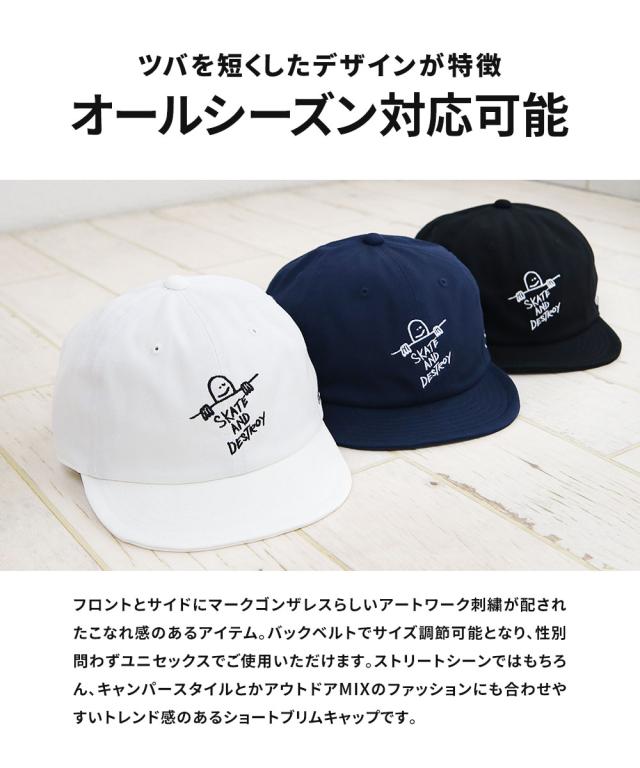 ストリートシーンではもちろん、キャンパースタイルとかアウトドアMIXのファッションにも合わせやすいトレンド感のあるショートブリムキャップです。