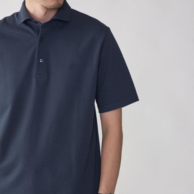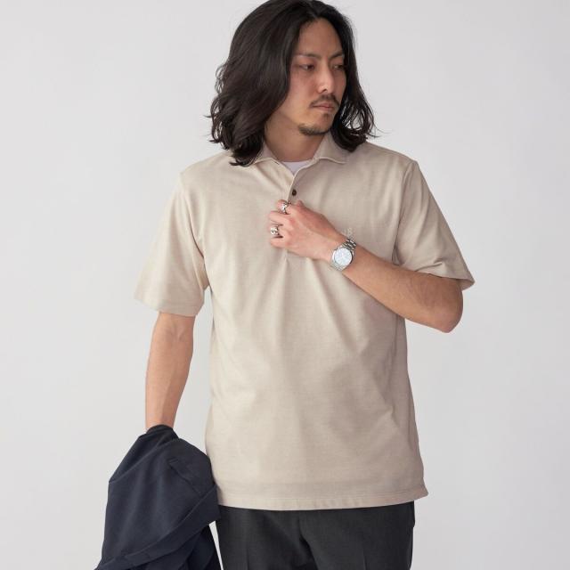 首回りがすっきりとしたワイドカラーを採用! 吸水速乾機能を搭載したきれいめポロシャツ
