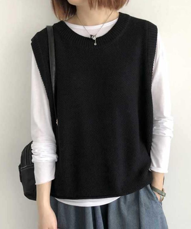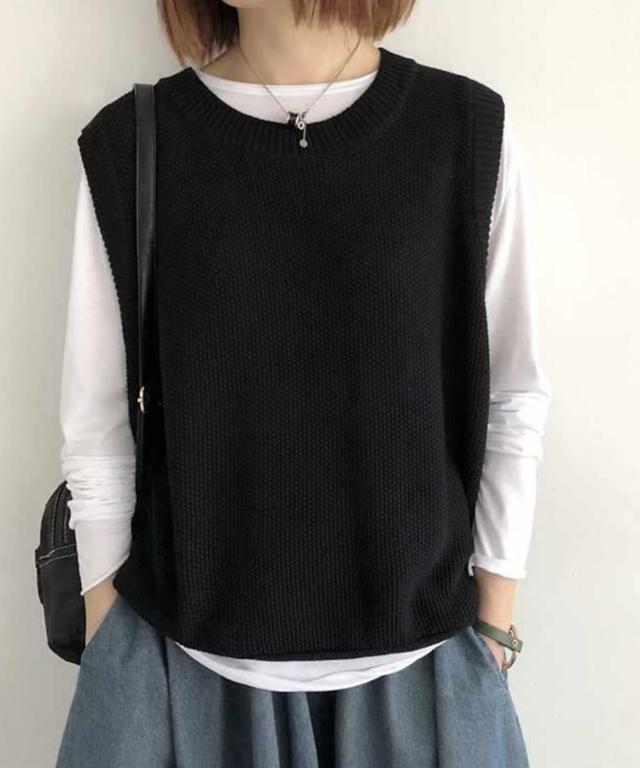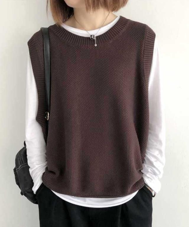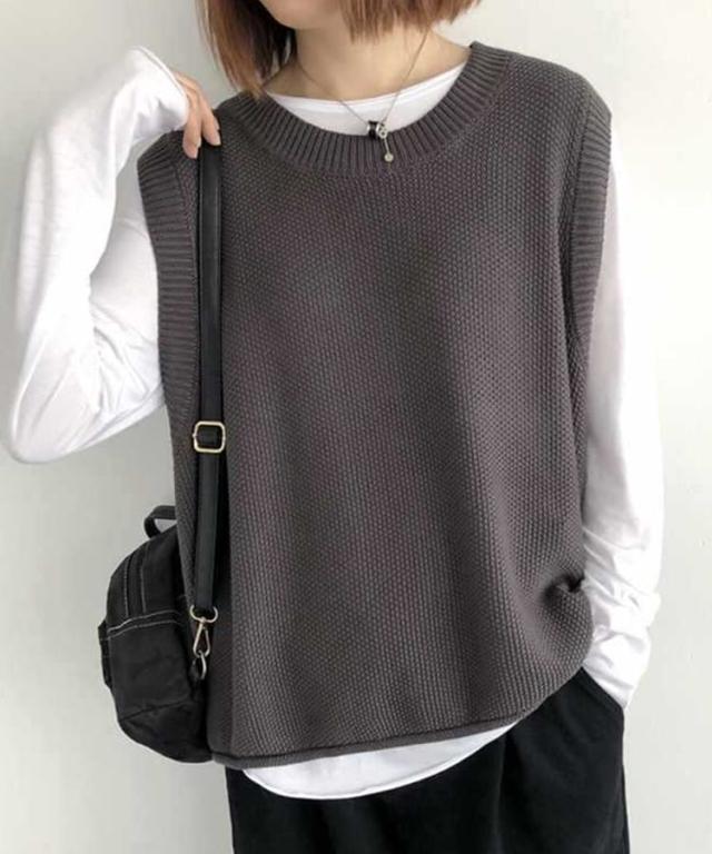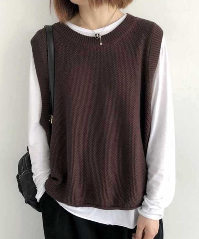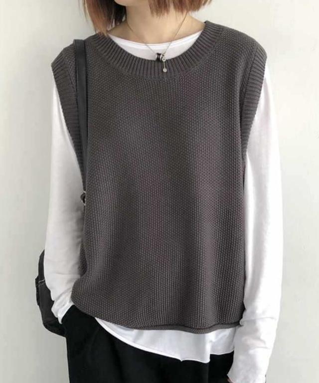裾のくるり仕様が可愛いニットベスト。