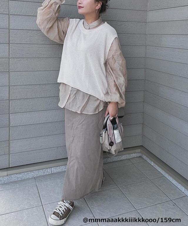 ■ノースリーブで、脇が程よく開いてため、ブラウスやカットソーなどを合わせた時も、もたつき感なく着られるのも嬉しいポイント。