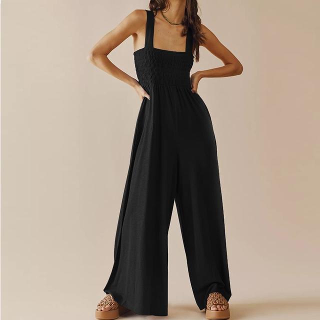ハイウエストの切り替えから広がるワイドシルエットがインパクト抜群のサロペットパンツ