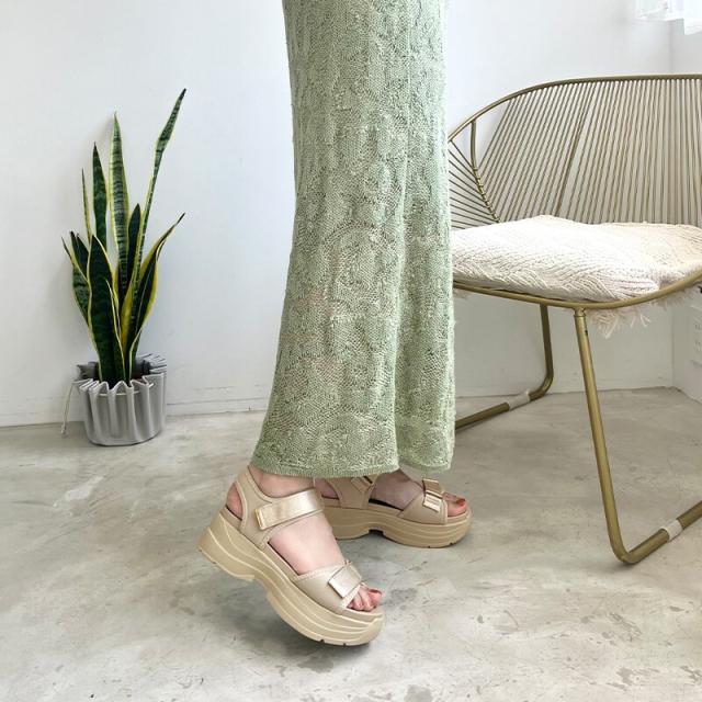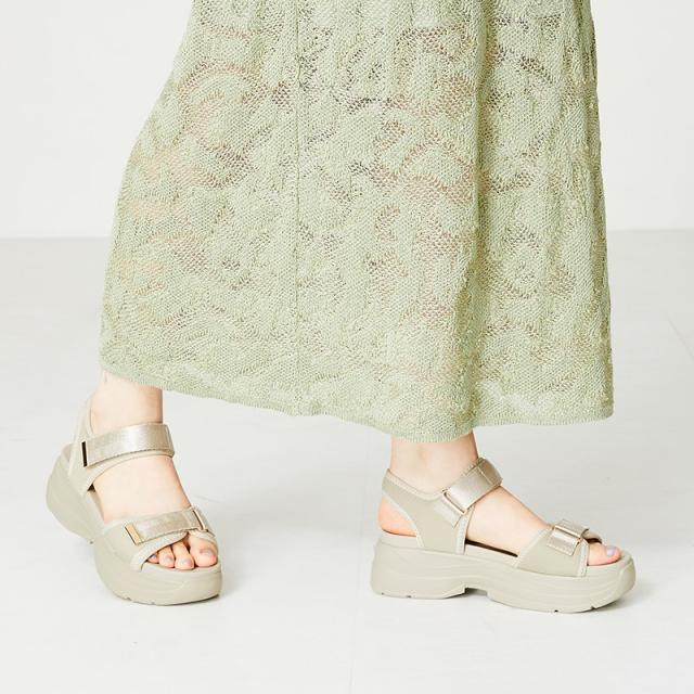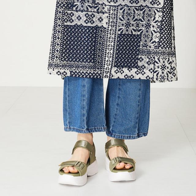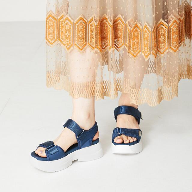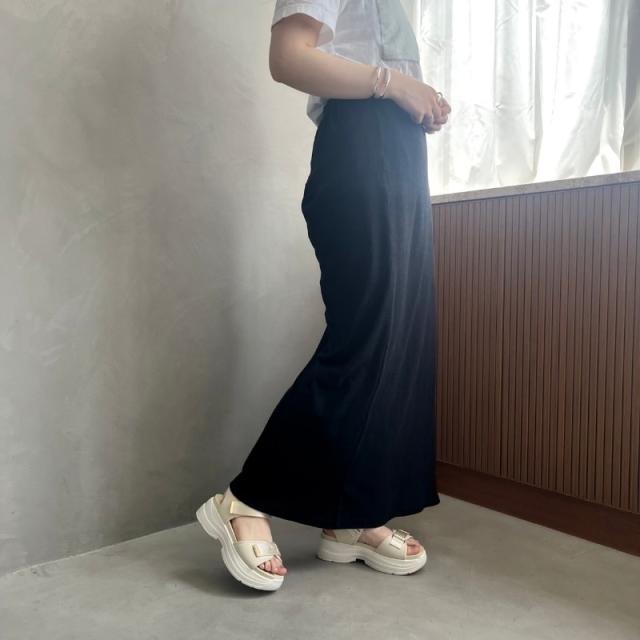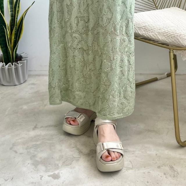 ●旬のボリュームのある厚底ヒールはスタイルアップを叶えてくれるだけでなく、見た目よりずっと軽量なのでたくさん歩いても疲れにくい。