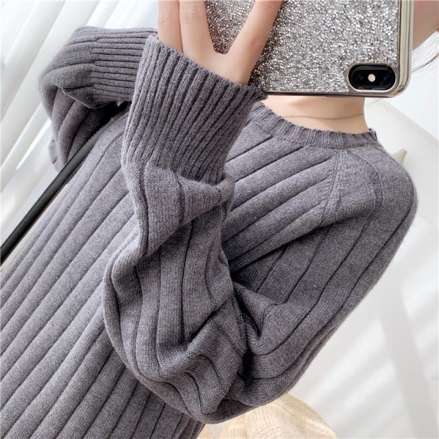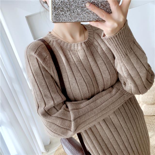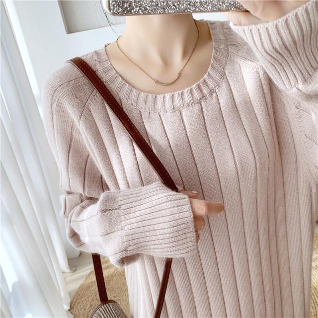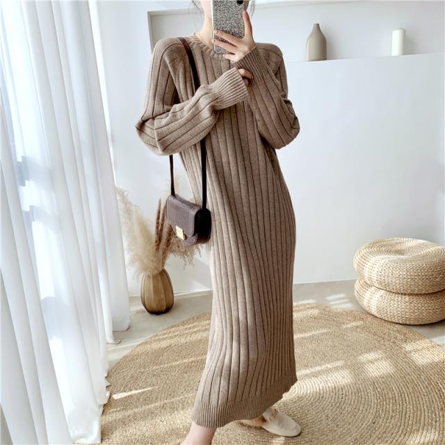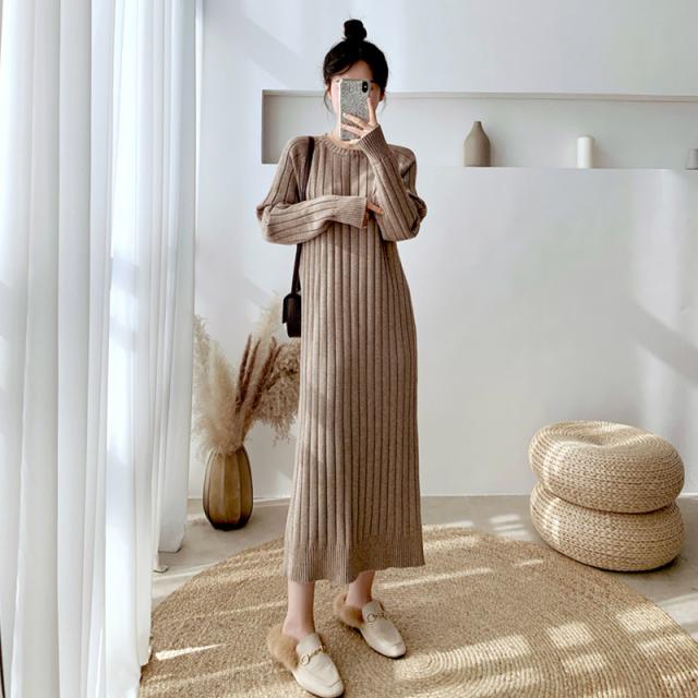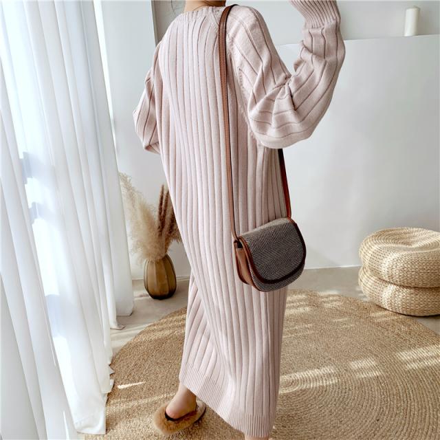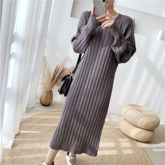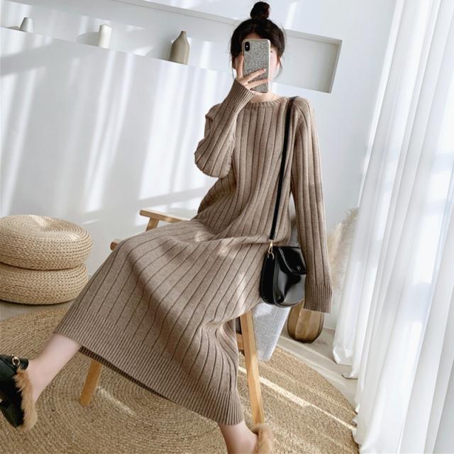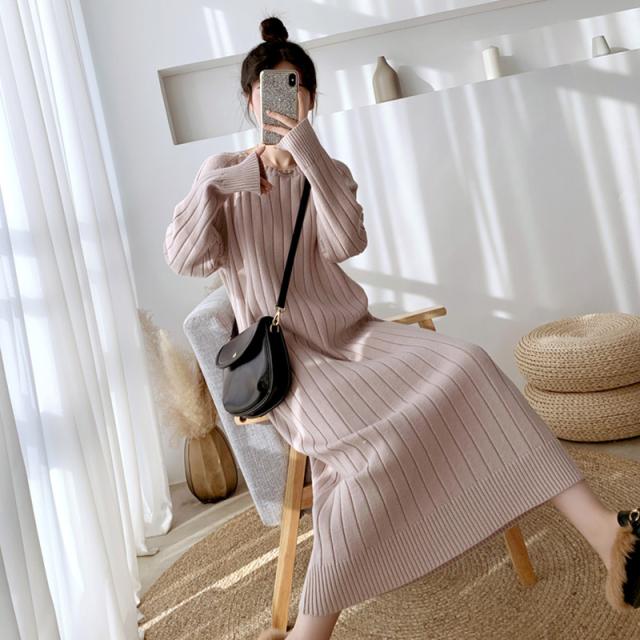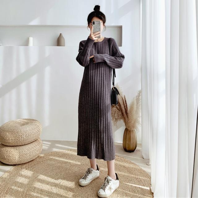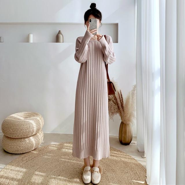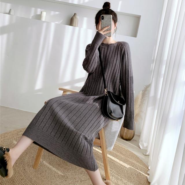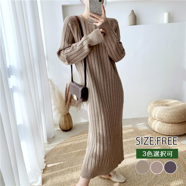 ワンピース リブニットドロップショルダーワンピース 長袖 大きいサイズ ゆったり ロングセーター トップス 冬 春 秋送料無料