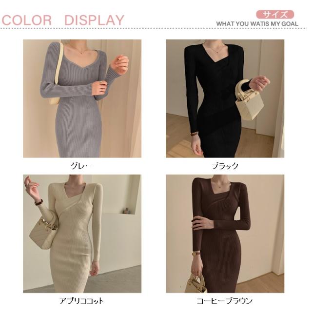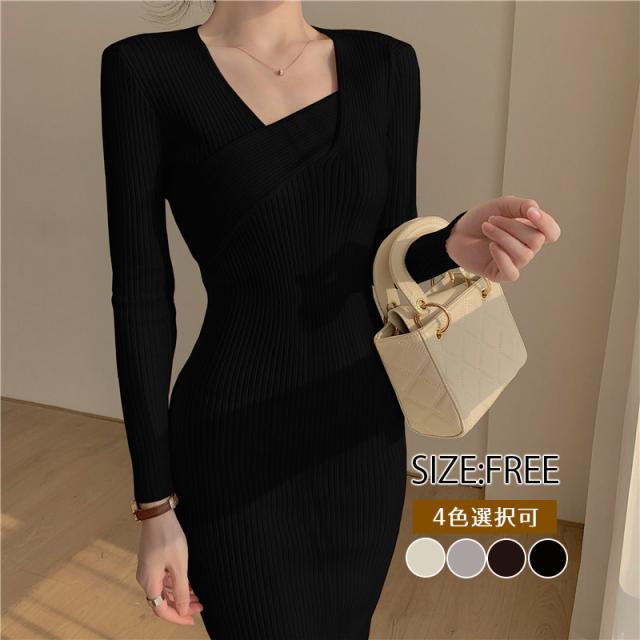 ワンピース ニットワンピース 長袖 細身 膝丈 結婚式 通勤 韓国ファンション 冬 春 秋送料無料