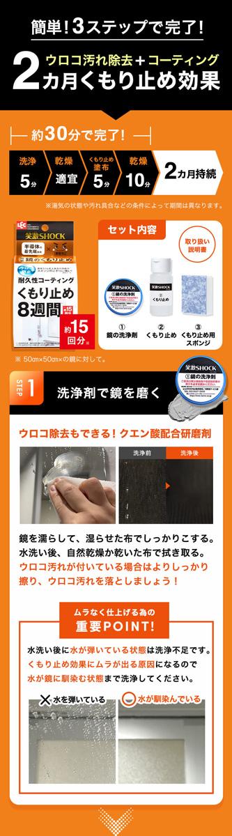 浴室鏡のくもり止め 笑激SHOCK 激落ちくん 防汚 2ヶ月持続(1セット)[お風呂掃除用品 その他]