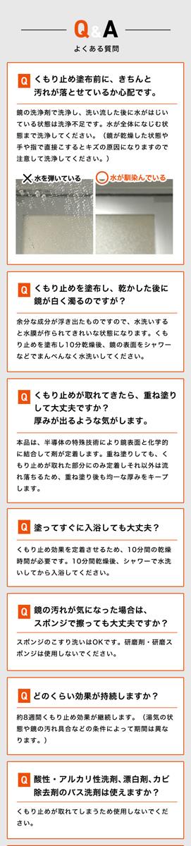 ※1湯気の状態や鏡の汚れ具合、塗り方などの条件によって効果、持続期間は異なります。