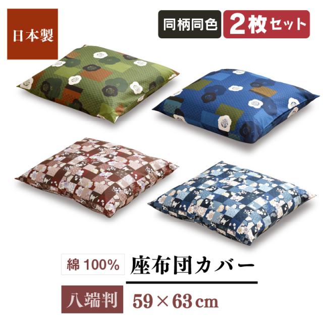 ☆お買い得!!同柄同色2枚セット★【クリックポスト配送商品】日本製 和柄 座布団カバー【八端判】約59×63cm