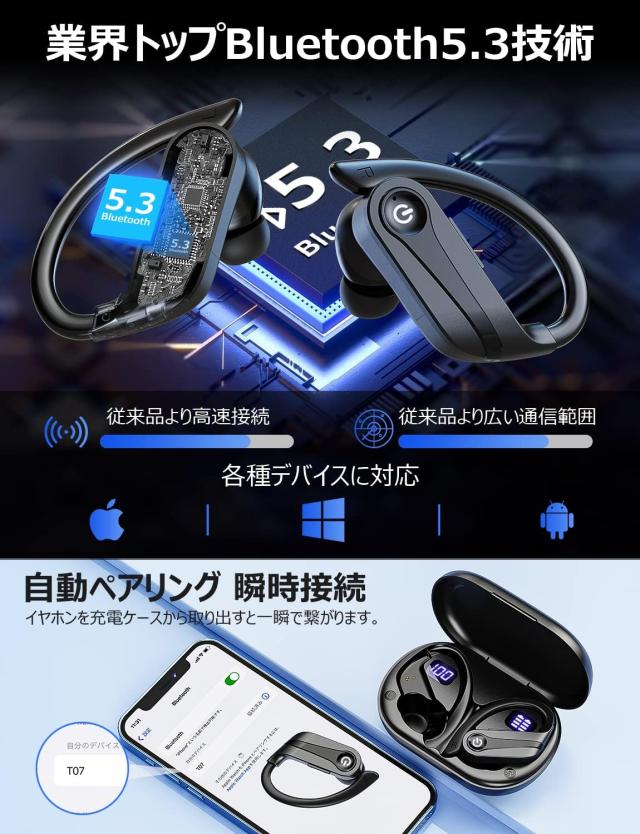 【新時代のBluetooth5.3技術】ワイヤレスイヤホンのbluetoothには時代先端Bluetooth5.3チップを搭載し、市販のBluetooth5.0と比べては4倍の処理速度があります。