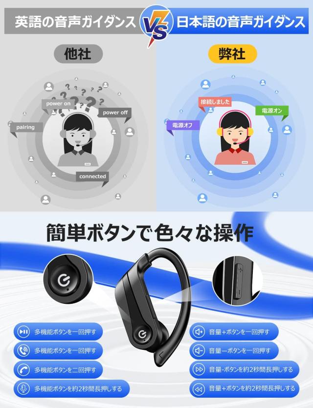 【耳掛け式イヤホン Bluetooth イヤホン】ワイヤレスイヤホン bluetooth ブルートゥースイヤホン 単体イヤホン最大20時間再生 合計100時間再生可能