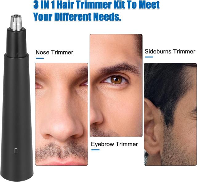 3合1ヘアトリマーキット:コードレス電動鼻毛トリマーキットには、もみあげトリマー、眉トリマー、鼻トリマーが含まれています。