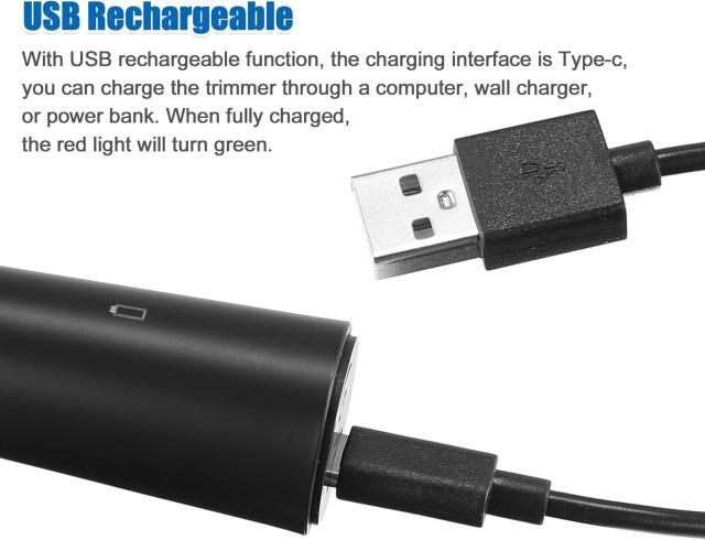 USB充電式:男性用鼻毛トリマーにはタイプ-cUSBケーブルとバッテリーが内蔵されており、コンピューター、壁の充電 器、またはパワーバンクを介してトリマーを充電でき、いつでもどこでもヘアカットのニーズを満たすことができます。