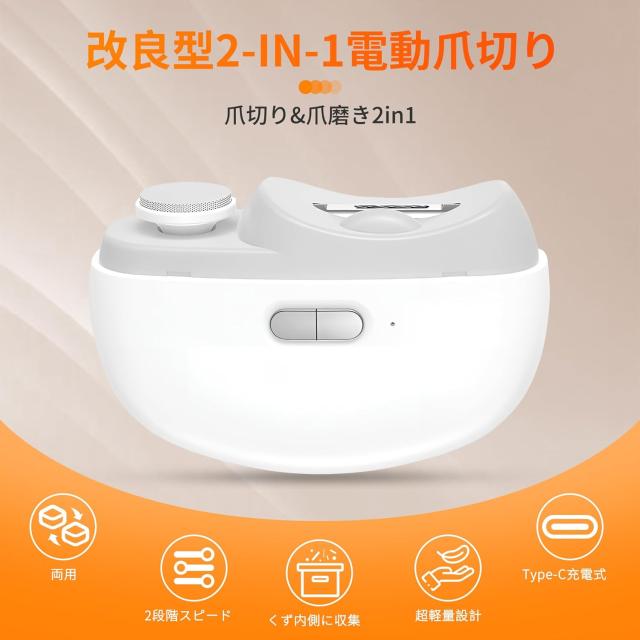 【2024新版】両用電動爪切り 2in1 電動爪切り 爪切り 電動つめ削り USB充電式 足の爪 低騒音 爪磨き