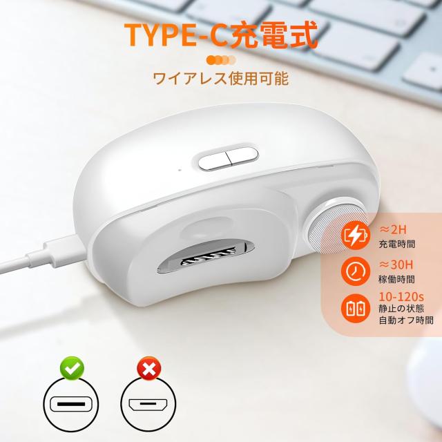 【Type-c充電式】電動爪切りのバッテリー容量は500mAhで、2時間充電すると、30時間連続使用ができます、Type-c充電は非常に便利で、USBソケット、モバイルバッテリー、ノートパソコン、ACアダプター、カーチャージャーで電動爪切りを充電できます。